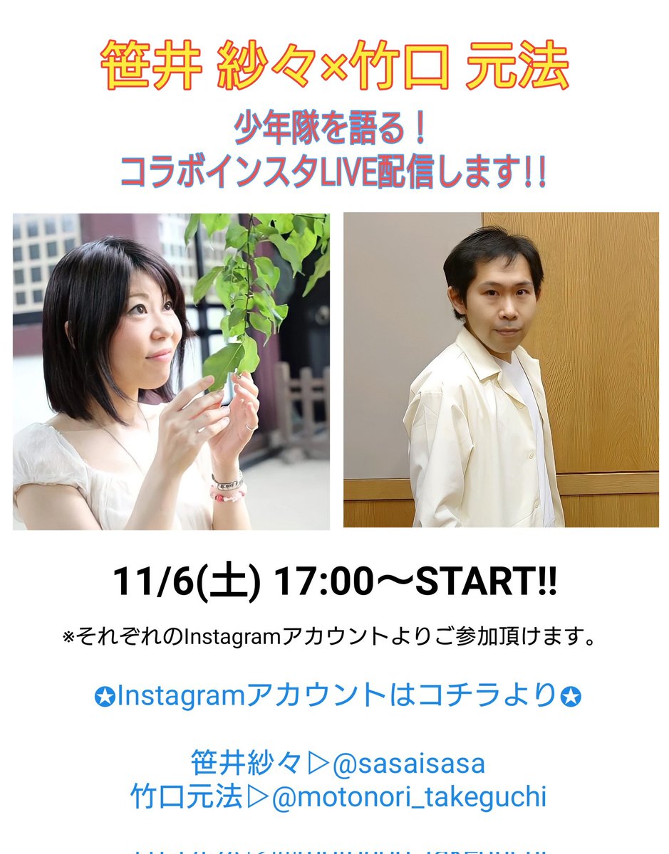 笹井紗々さんとインスタLIVEにて少年隊を語る!配信決定です😄✨